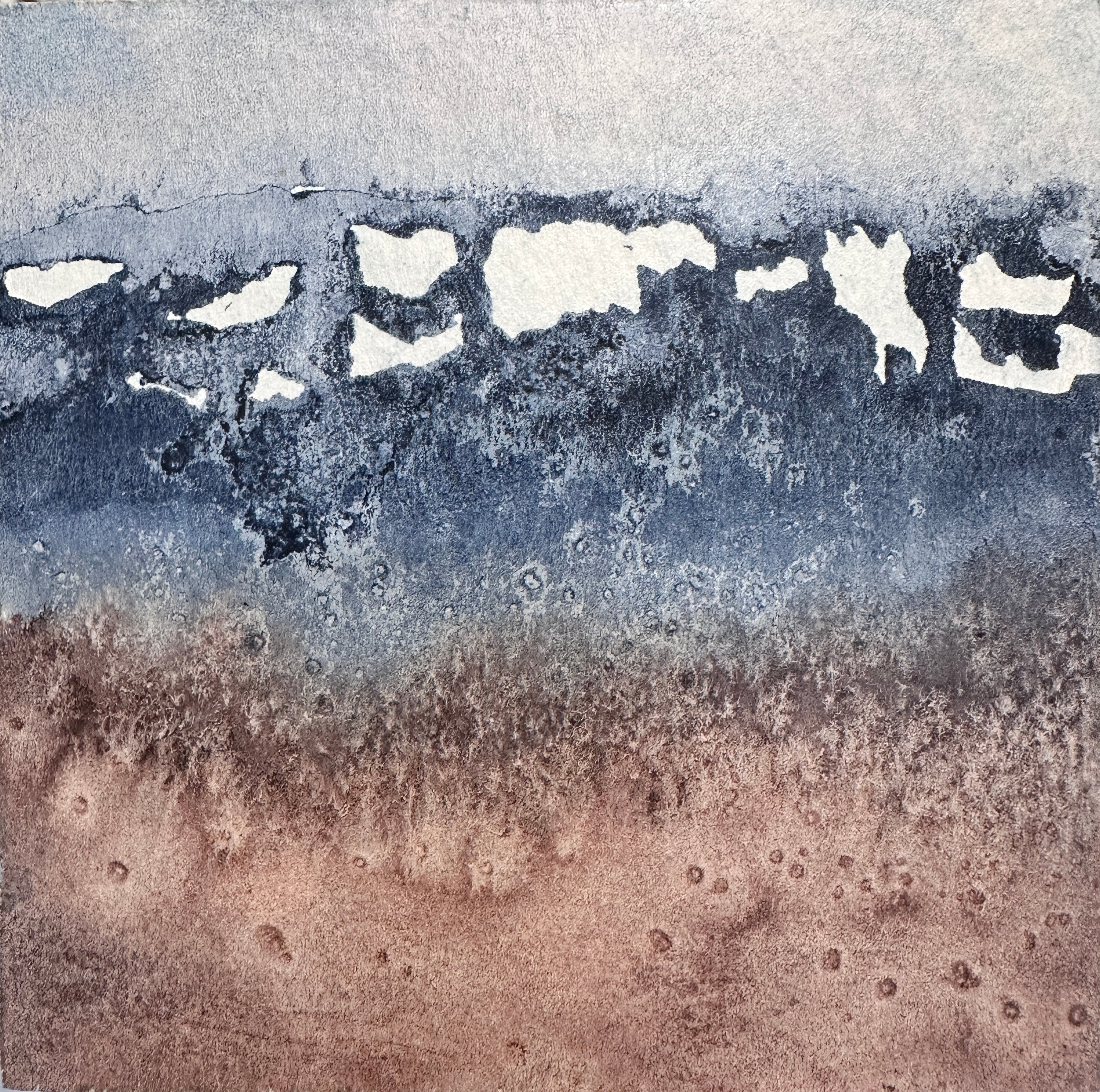 Vatnslitir á pappír, límt á viðar panel, varið með köldu vaxi.