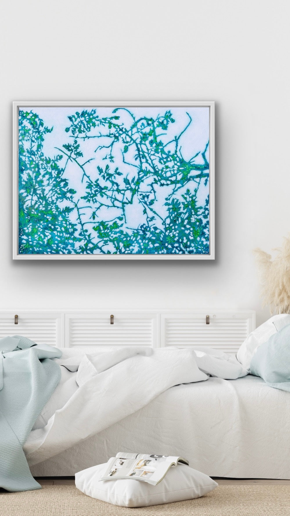 Í mörgum verka Kristínar Bertu má finna skuggaform af trjám eða gróðri. Skuggarnir sem gróðurinn varpar frá sér eða útlínur þeirra eru þar innblásturinn.